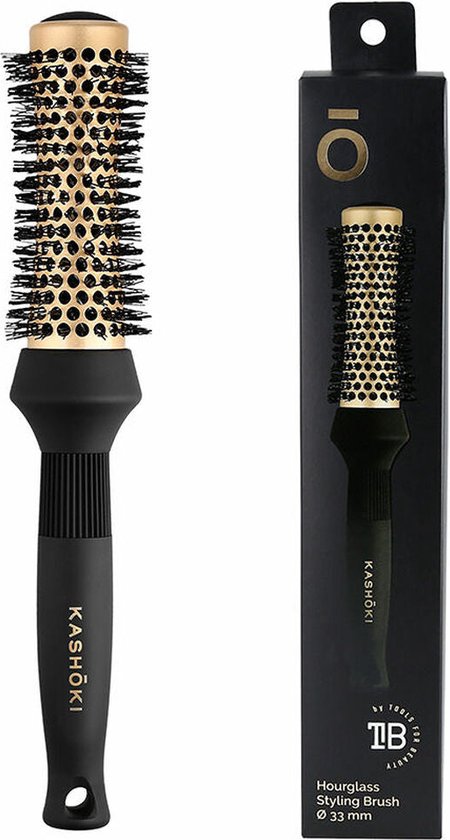 KASHOKI Hourglass Styling Brush 33mm is een van de meest tijdloze collecties van KASHOKI. De zandloperborstel is in elk detail verfijnd om zo aan de hoogste verwachtingen te voldoen. Een mooi design, het gebruik van materialen van de beste kwaliteit en de zorgvuldige aandacht voor details resulteert in een lijn van de meest tijdloze haarstylingproducten. Met een diameter van 33mm wordt er een gemiddelde fijne krul gecreëerd.
